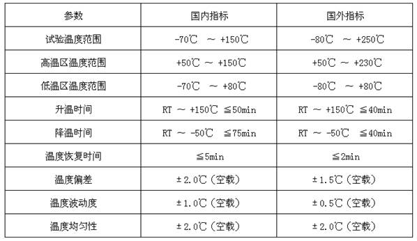 1.需要改进的主要技术指标如下: 高低温冲击试验箱参数指标对比